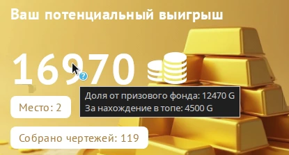 Процент от призового фонда зависит от количества участников и количества собранных вами чертежей. Более подробная формула ниже